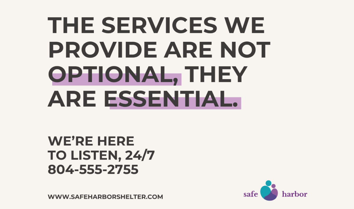 Safe Harbor began in 1998 when Bon Secours, Henrico County, and other key partners came together to address a critical gap: the lack of shelter and support services for survivors of domestic violence in Henrico County. That collective commitment led to the opening of Safe Harbor’s emergency shelter in 2000, providing a safe place for individuals and families in immediate danger.